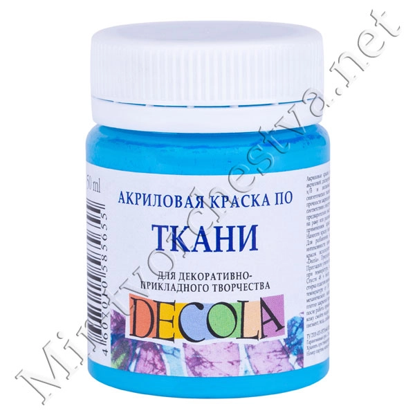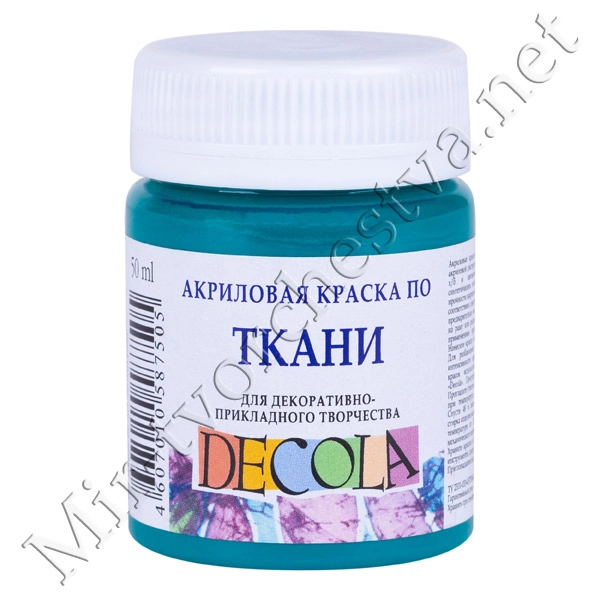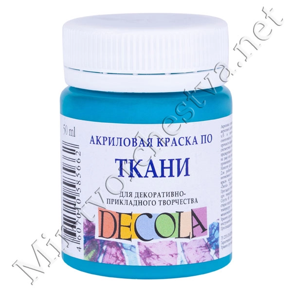 Краска акриловая по ткани, Бирюзовая, 50мл, Decola
