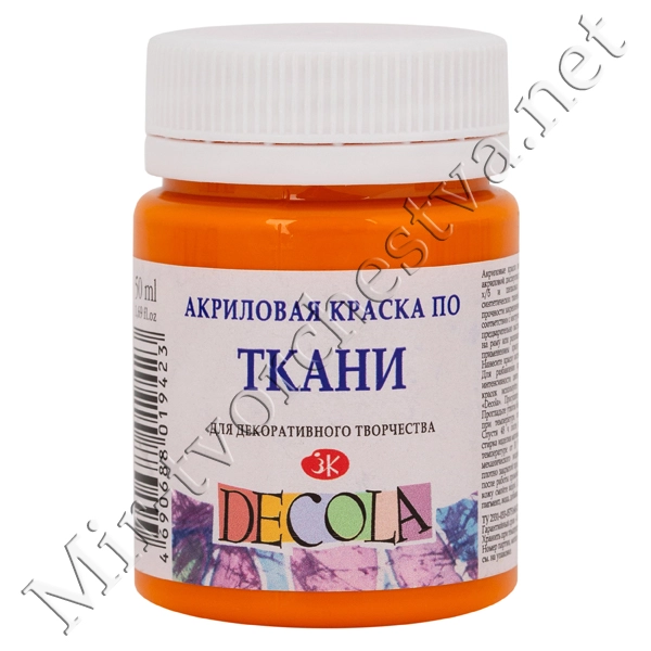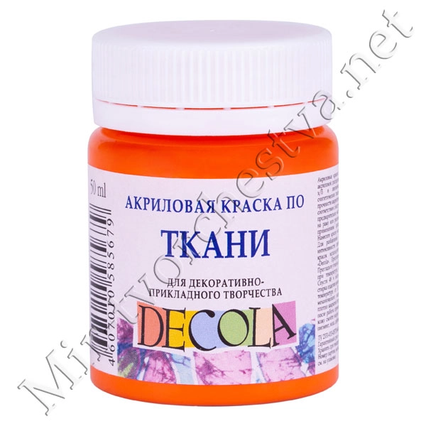 Краска акриловая по ткани, Мандариновая, 50мл, Decola
