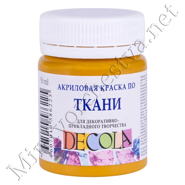 Краска акриловая по ткани, Охра светлая, 50мл, Decola
