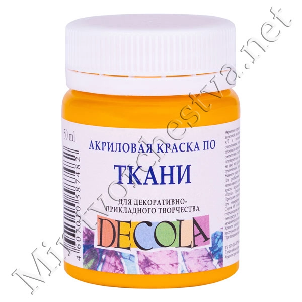 Краска акриловая по ткани, Желтая темная, 50мл, Decola