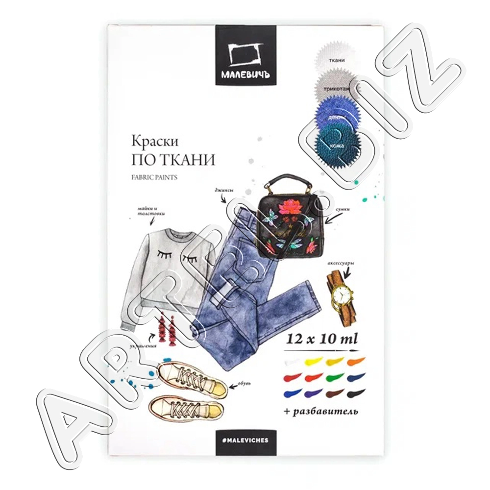 Набор акриловых красок по ткани, 12 цв. по 10 мл, Малевичъ