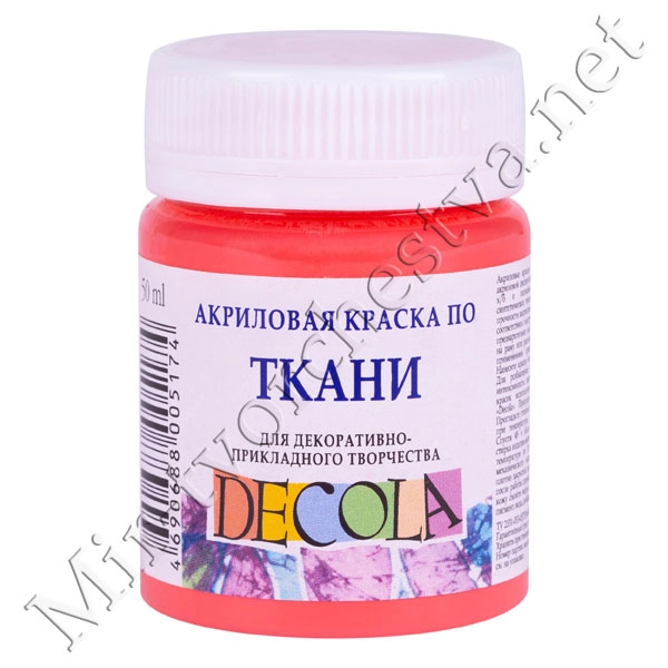 Краска акриловая по ткани, Коралловая, 50мл, Decola