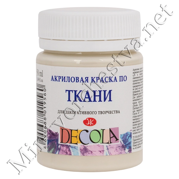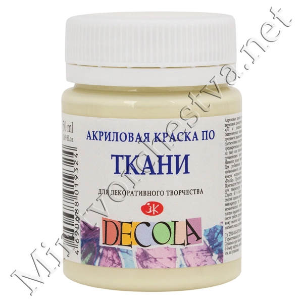 Краска акриловая по ткани, Слоновая кость, 50мл, Decola