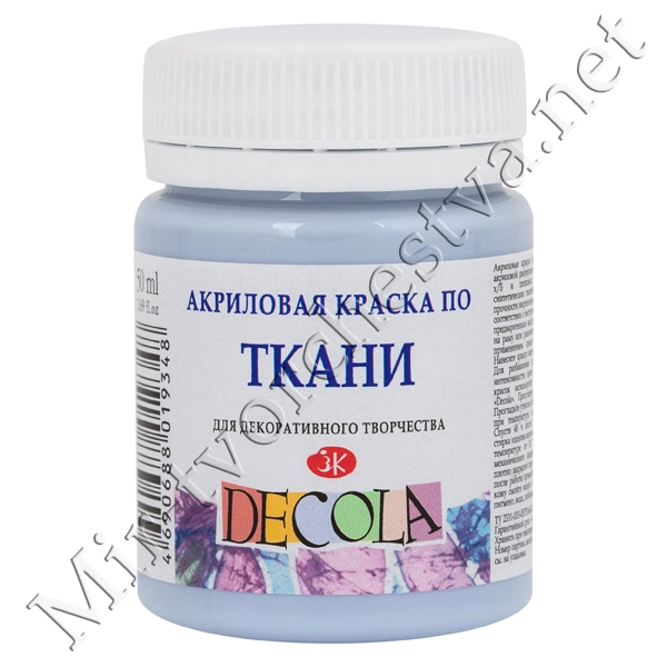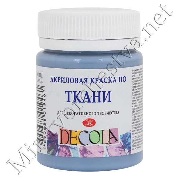 Краска акриловая по ткани, Серо-голубая, 50мл, Decola