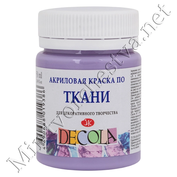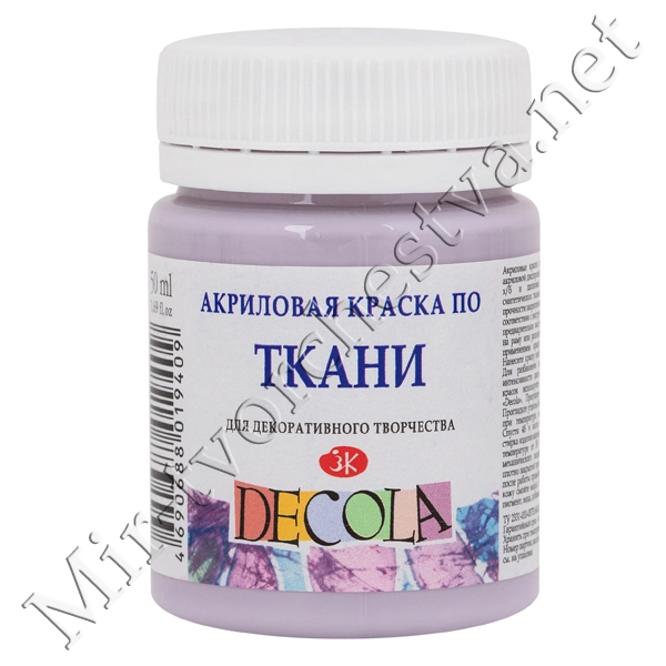 Краска акриловая по ткани, Лавандовая, 50мл, Decola