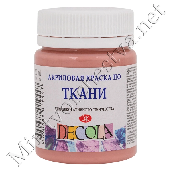 Краска акриловая по ткани, Пыльная роза, 50мл, Decola