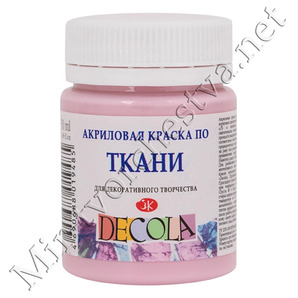 Краска акриловая по ткани, Розовая светлая, 50мл, Decola