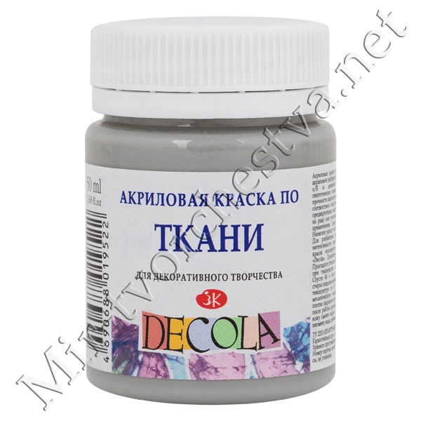 Краска акриловая по ткани, Серая, 50мл, Decola
