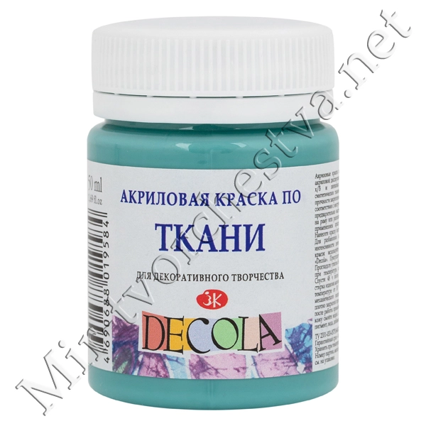 Краска акриловая по ткани, Ментоловая, 50мл, Decola