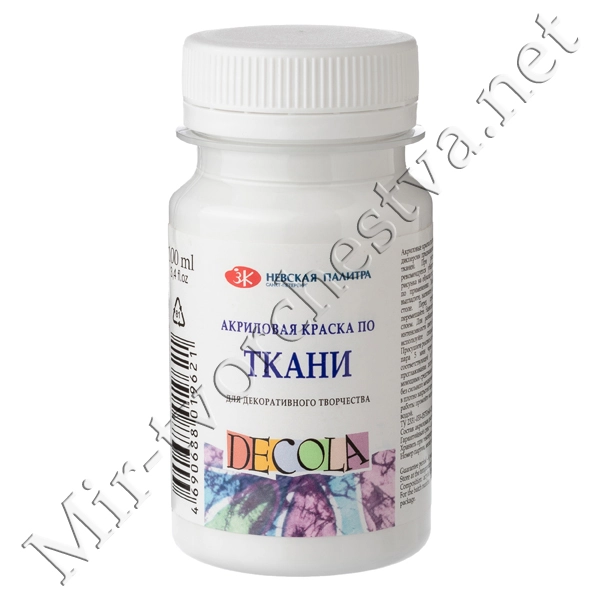 Краска акриловая по ткани, Белая, 100мл, Decola