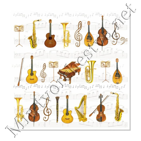 Декупажная салфетка "Музыкальные инструменты", 33*33 см, 18,5 г/м2, Abiente