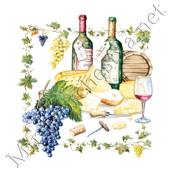 Декупажная салфетка "Вино и сыр", 33*33 см, 18,5 г/м2, Abiente