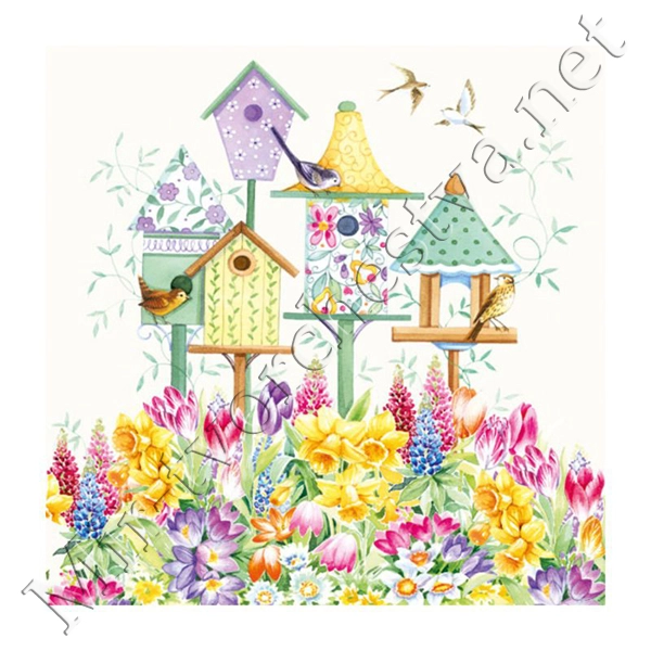 Декупажная салфетка "Скворечники и цветы", 33*33 см, 18,5 г/м2, Abiente