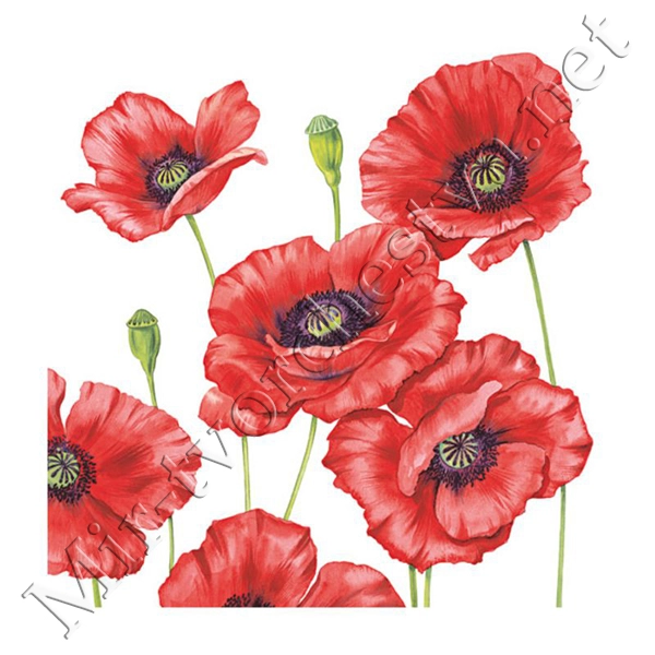 Декупажная салфетка "Маки", 33*33 см, 18,5 г/м2, Abiente
