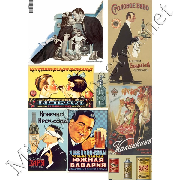 Декупажная карта 29,5х42 "Поцелуи, вино и сладости (ретроплакаты)"