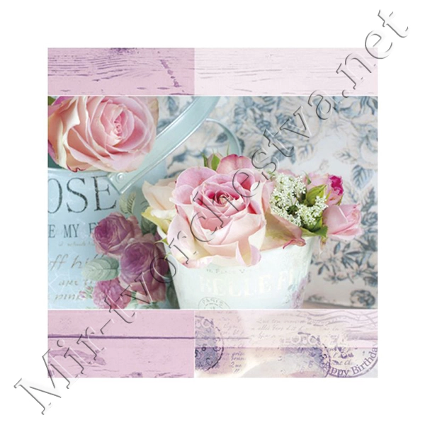 Декупажная салфетка "Розы", пастельные, 33*33 см, 17,5 г/м2, ti-flair