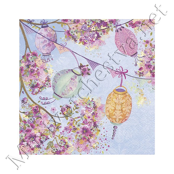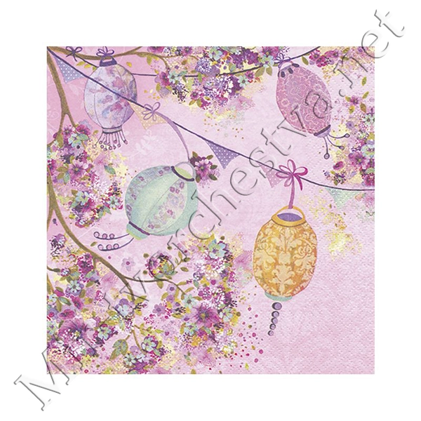 Декупажная салфетка "Красочные фонарики", розовые, 33*33 см, 17,5 г/м2, ti-flair