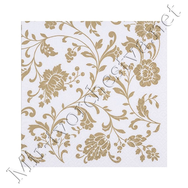 Декупажная салфетка "Орнамент цветы", золотые, 33*33 см, 17,5 г/м2, ti-flair