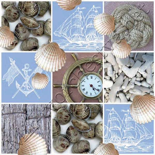 Декупажная салфетка "Колллаж ракушка", 33*33 см, 17,5 г/м2, ti-flair