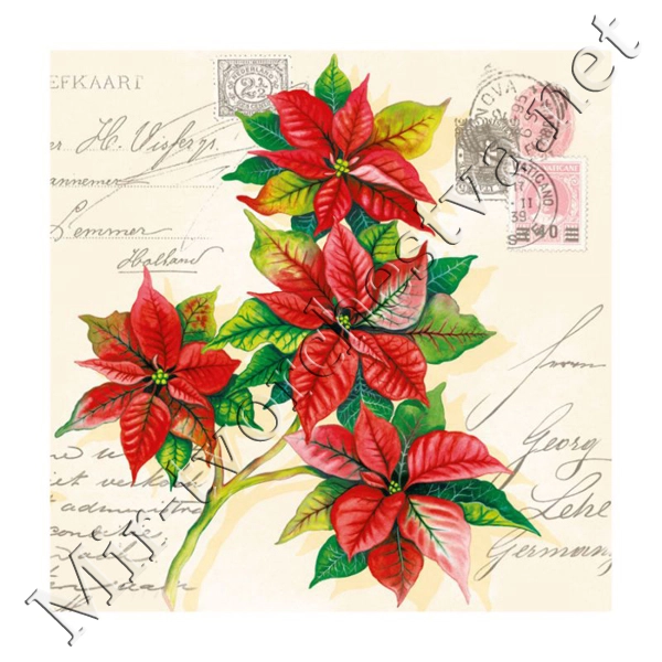 Декупажная салфетка "Винтажная пуансетия", 33*33 см, 18,5 г/м2, Abiente