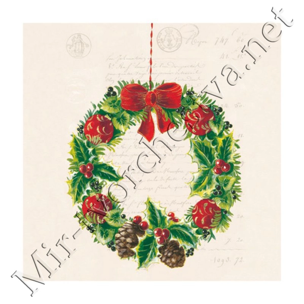 Декупажная салфетка "Рождественский веночек", 33*33 см, 18,5 г/м2, Abiente