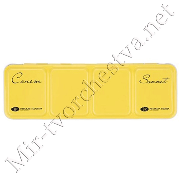 Пенал для акварели на 21 кювету, с палитрой, металлический, Жёлтый, (en), Сонет
