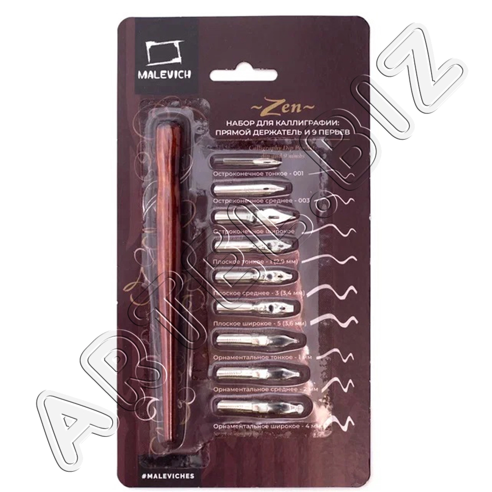 Набор для каллиграфии, 9 перьев с прямым держателем, Малевичъ