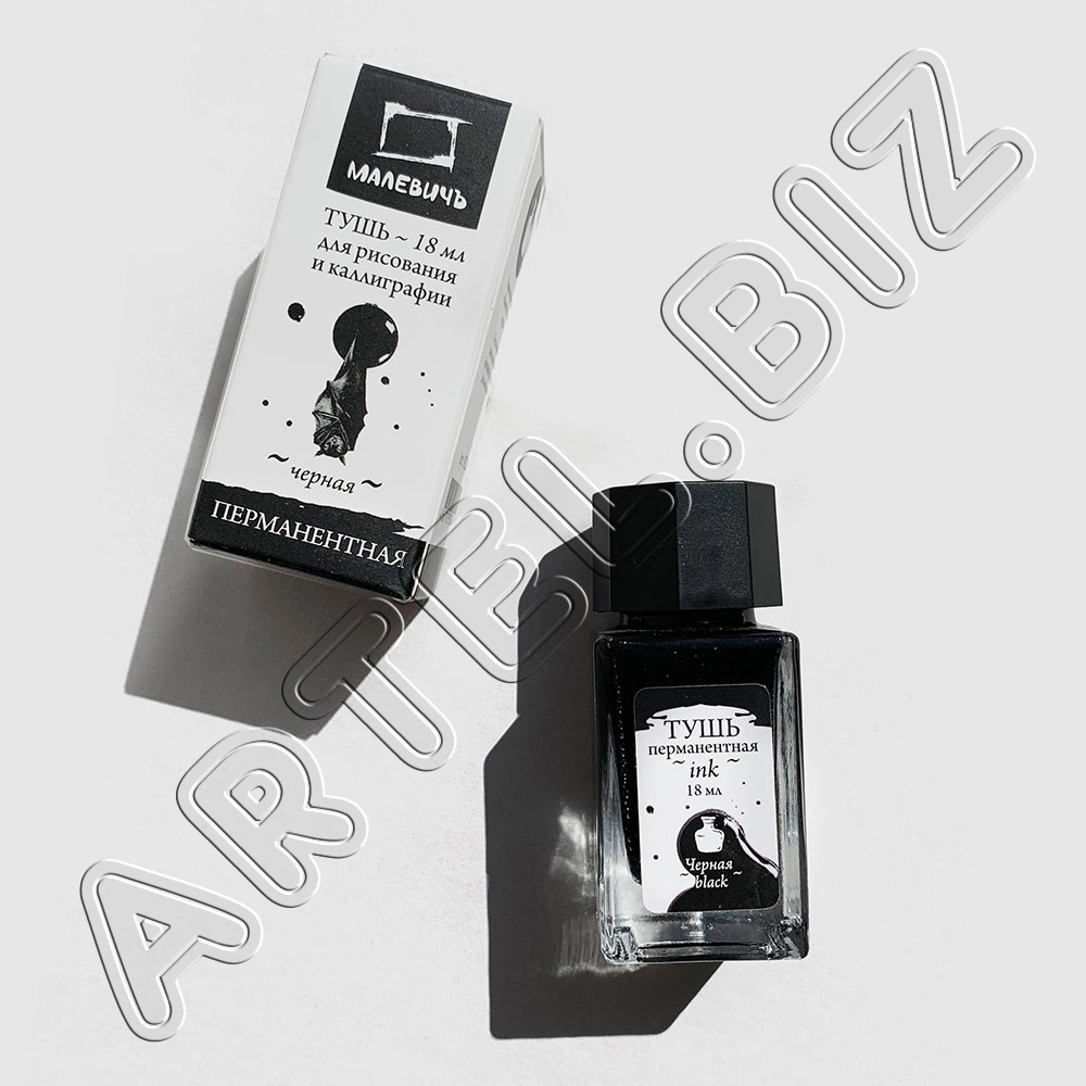 Тушь для рисования и каллиграфии, Чёрная перманентная, 18 мл, Малевичъ