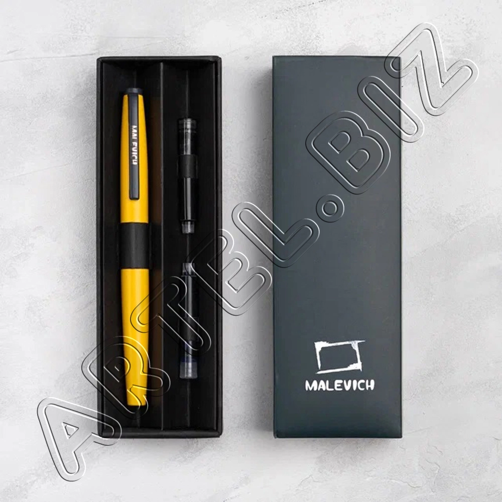 Ручка перьевая с конвертером, перо EF 0,4 мм, 2 картриджа (индиго, черный), Цедра лимона, Малевичъ