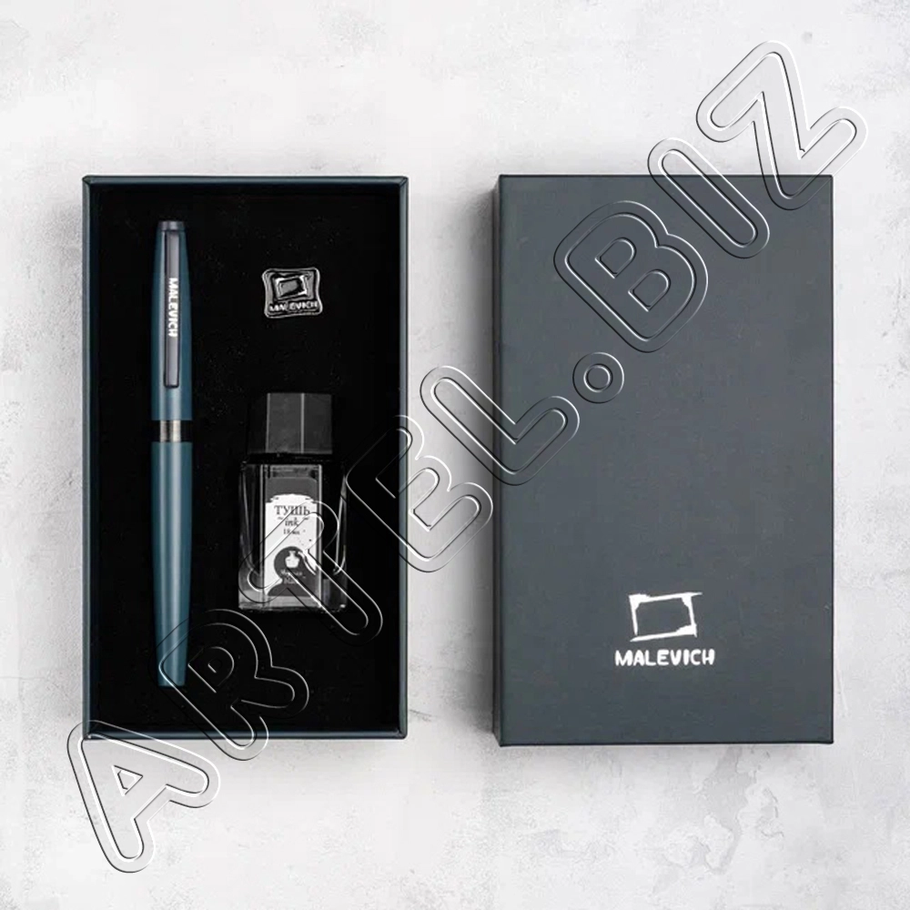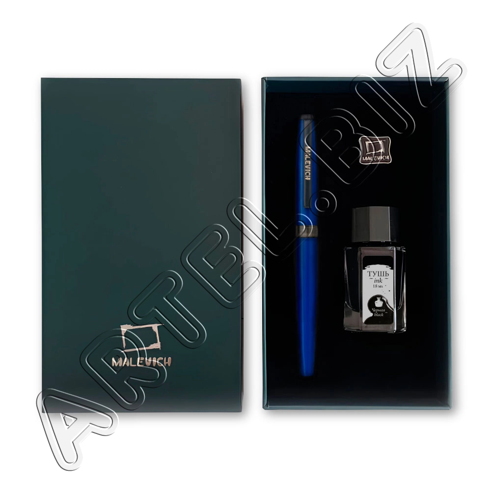 Ручка перьевая с конвертером, перо EF 0,4 мм, набор с черной тушью и значком, Ультрамарин, Малевичъ