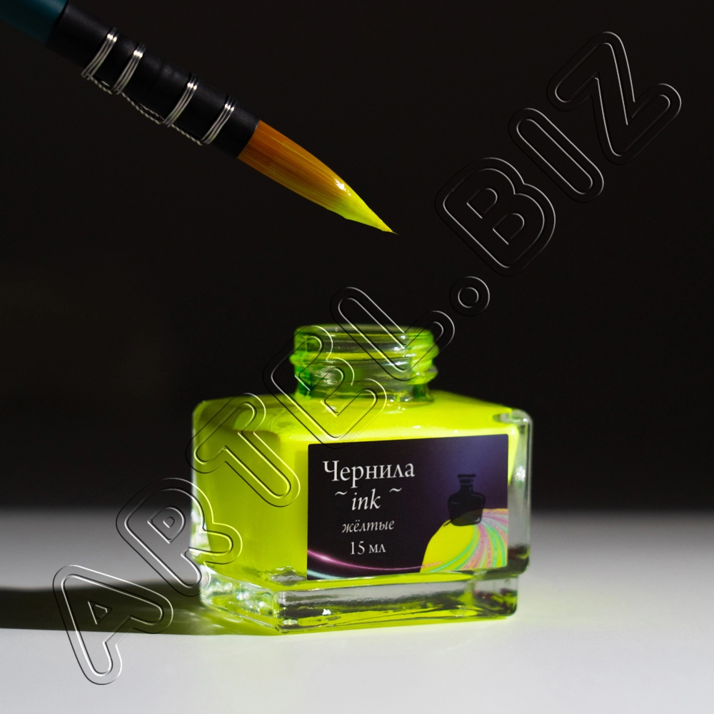 Чернила для рисования и каллиграфии, неоновые Жёлтые, 15 мл, Малевичъ