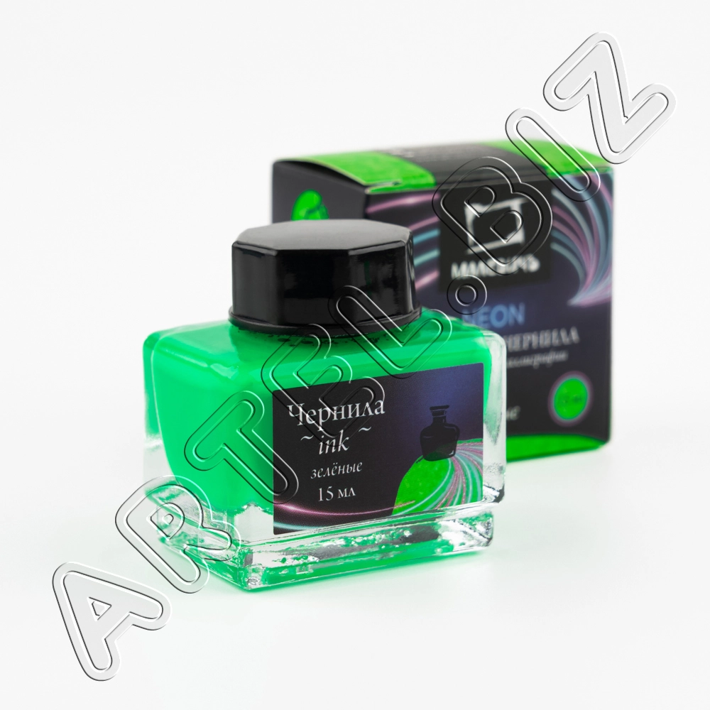 Чернила для рисования и каллиграфии, неоновые Зелёные, 15 мл, Малевичъ