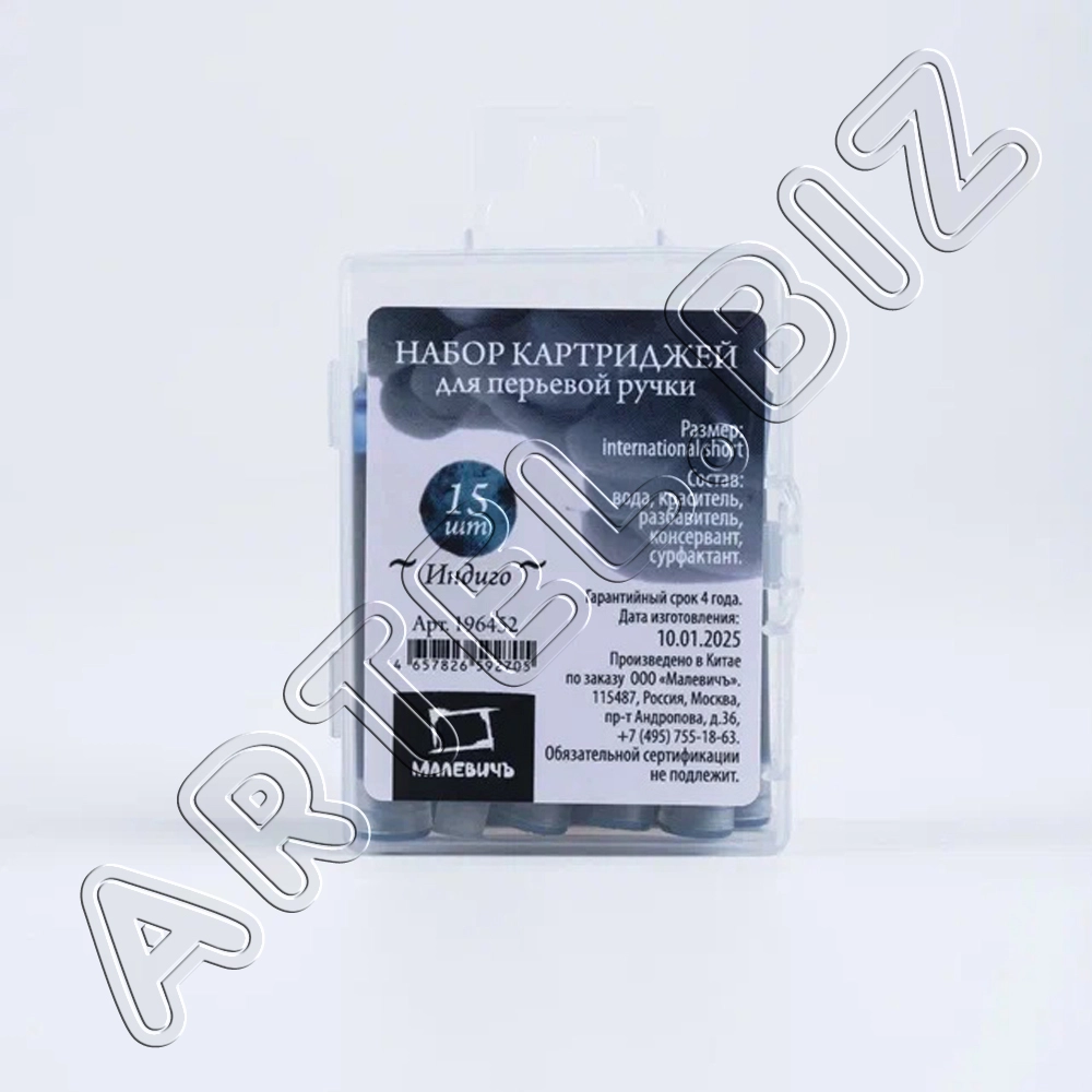 Набор картриджей для перьевой ручки, 15 шт., Индиго, Малевичъ