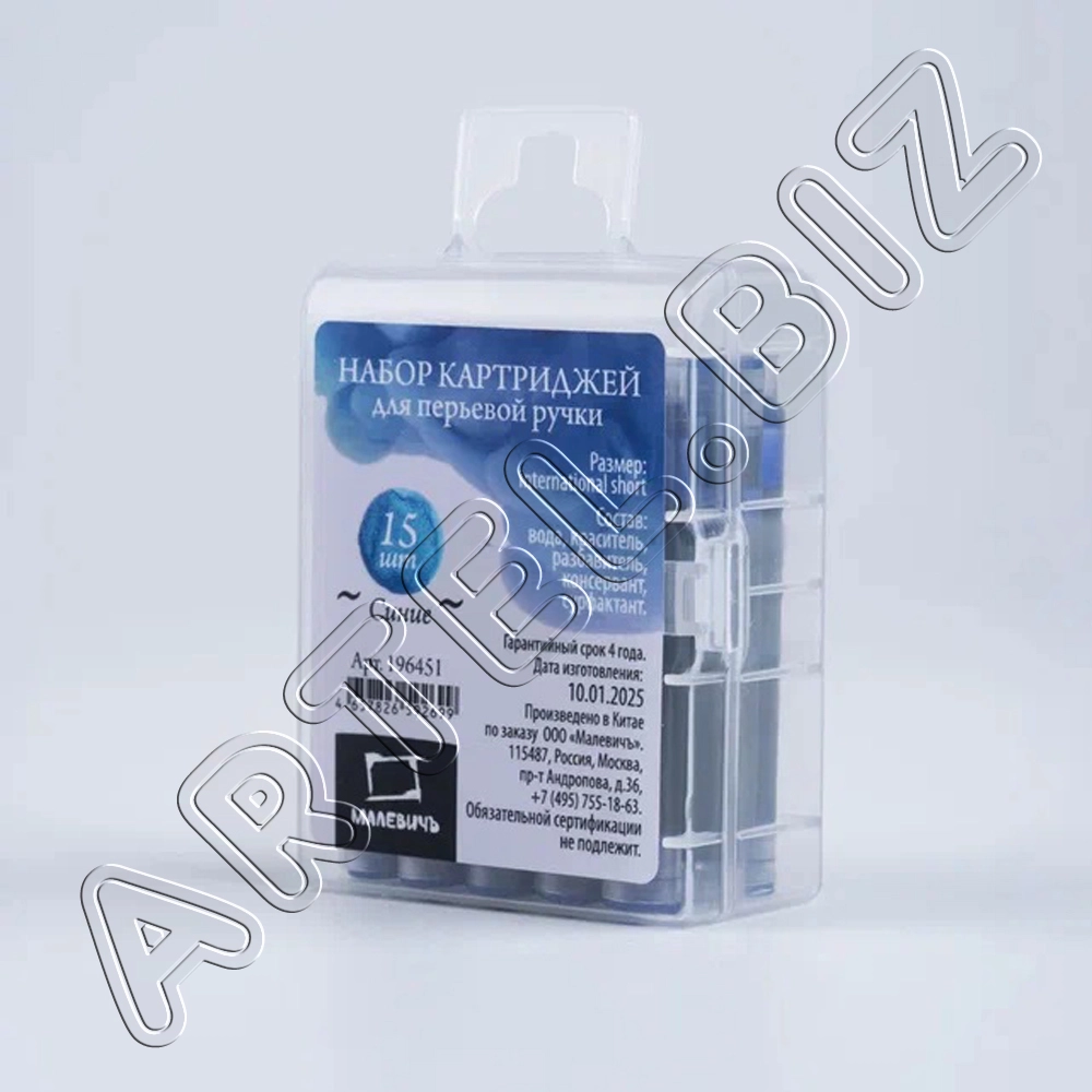 Набор картриджей, для перьевой ручки, 15 шт., Синие, Малевичъ