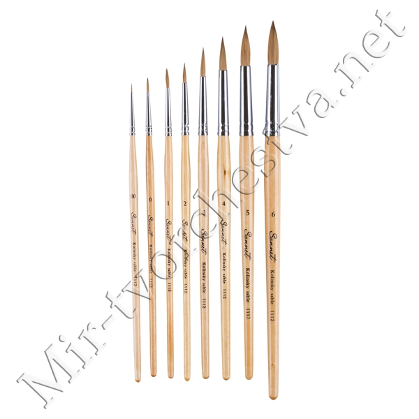 Кисть колонок, круглая, короткая ручка, пропитанная лаком №6, Сонет