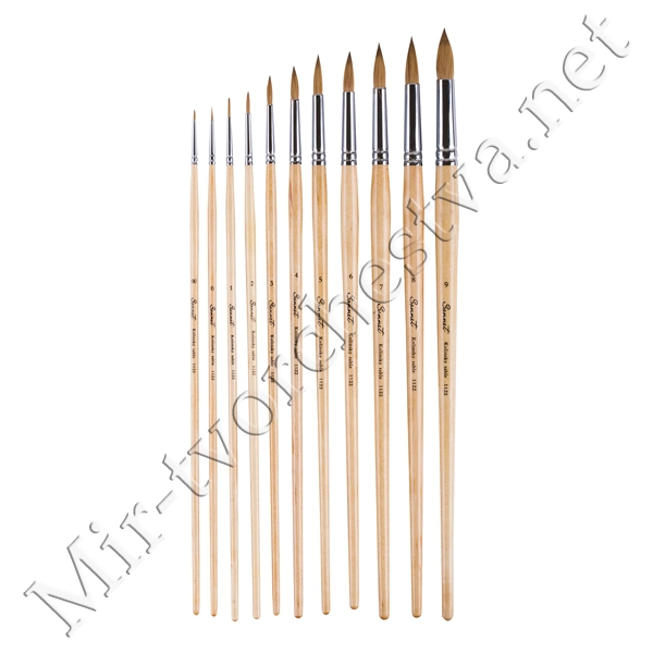 Кисть колонок, круглая, короткая ручка, пропитанная лаком №5, Сонет