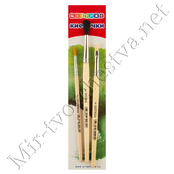 Набор кистей №12 (3 шт.) (синтетика круглая №3, белка круглая №5, щетина плоская №6), Цветик