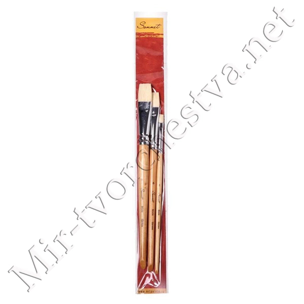 Набор кистей, "Sonnet №6" (щетина, 3 шт: плоская №2, 6, 8), Сонет