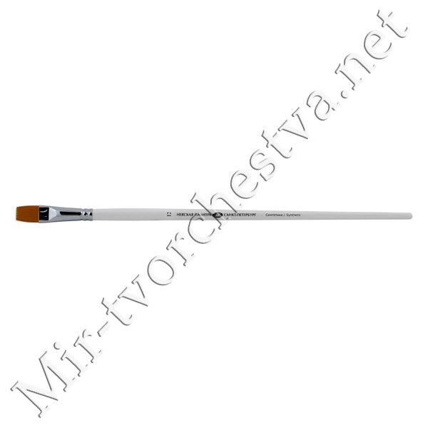 Кисть синтетика, плоская, длинная ручка, №12, Невская Палитра