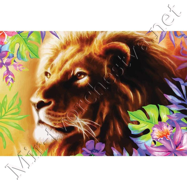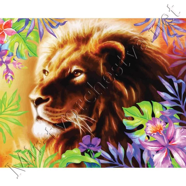 Алмазная мозаика на подрамнике с полным заполнением «Лев в цветах», 20x30см