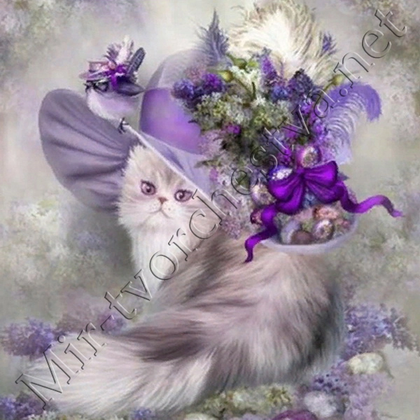 Алмазная мозаика, Кошка в шляпе, №BE-066, 26х36см