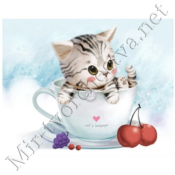 Алмазная мозаика, Котенок с вишней, №1243, 46х38см