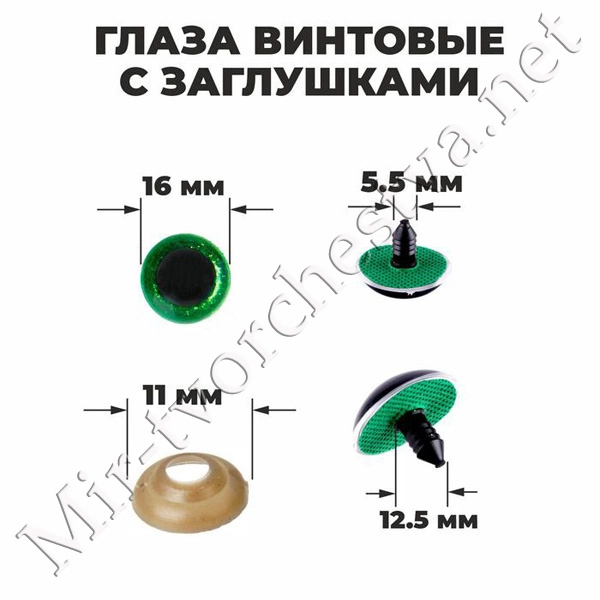 Глаза винтовые с заглушками, «Блёстки», размер 1 шт: 1,6 см, цвет зелёный