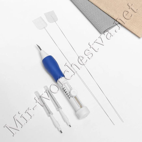 Игла для вышивания, для ковровой техники, d = 1,3/1,6/2,2 мм, с нитевдевателем, цвет белый/синий