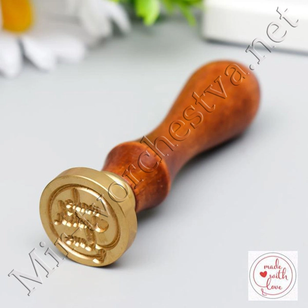 Печать для сургуча с деревянной ручкой "Made with love" 9х2,5х2,5 см 5278946