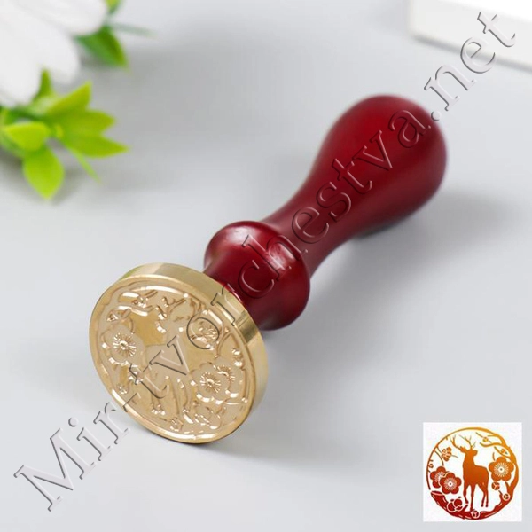 Печать для сургуча с деревянной ручкой "Олень в цветущем лесу" 9х2,5х2,5 см 5278947