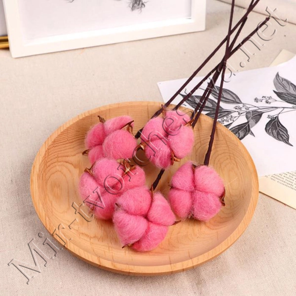 Декор сухоцвет "Хлопок" d-5см, 30см, Розовый