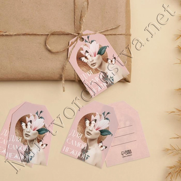 Открытка-шильдик на подарок «Ты так красива», картон 5x7см (набор 5шт.)