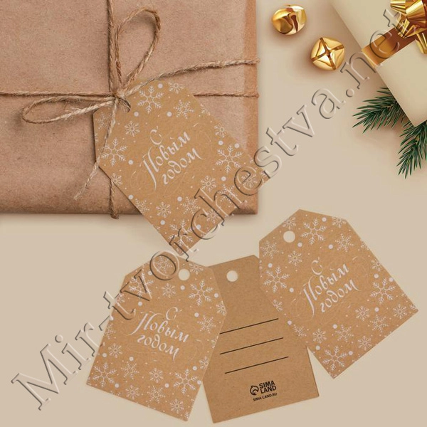Открытка-шильдик на подарок «Снежинки», крафт 5x7см (набор 5шт.)