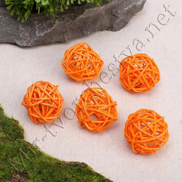 Шар декоративный из лианы, размер 1 шт. — 3 см, цвет Оранжевый